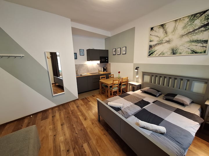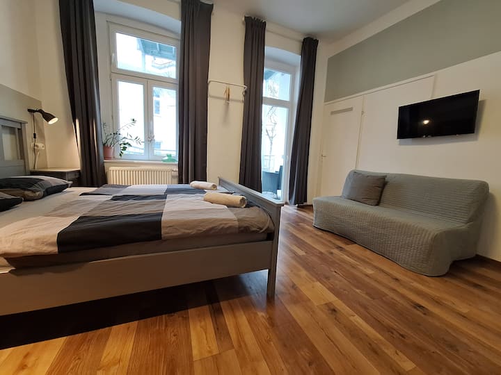 מרפסת שקטה ביוזףשטאדט ~ מיטת קינג סייז ~ 12 דקות מהמרכז