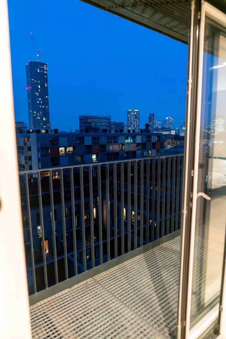דירת שני חדרי שינה במרכז העיר עם מרפסת ונוף לעיר