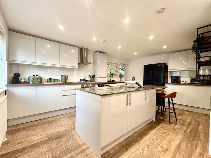 מצוידת במלואה לכל דבר, מארוחות בוקר מהירות ועד חגיגות חג! תמצאו כיריים ותנור, מקרר-מקפיא כפול, אי גדול עם שפע מקום אחסון, בר ארוחת בוקר, מכונת קפה, מיקרוגל, קומקום, טוסטר ואפילו פרייר אוויר. בנוסף, יש מכונת כביסה/מייבש לשהיות ארוכות יותר או לידיים קטנות ומבולגנות!