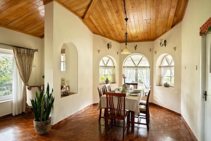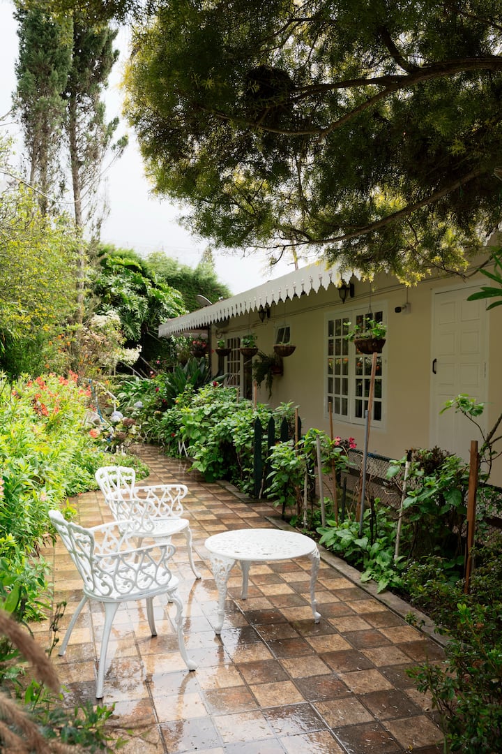 בונגלו מקסים בן 4 חדרי שינה, ידידותי לחיות מחמד, מהתקופה הבריטית. התעוררו לנופים מעורפלים של גבעות קונור והקריאות הרחוקות של טווסים שמגיעות מהגינה. להסתובב בין עצי אלון, תאנה ותפוז לאורך שבילים מלאי עלים עד לגזיבו. אפשר להתכנס בחדר המשחקים בזמן שחיות המחמד משוטטות בחופשיות על המדשאות הפתוחות. כשהאוויר מתקרר, הערבים מתעוררים לחיים עם מנגל, מדורה, ומזכירים לכם כמה נדיר למצוא בית כה רגוע וירוק, והכול בהישג יד מהעיר.