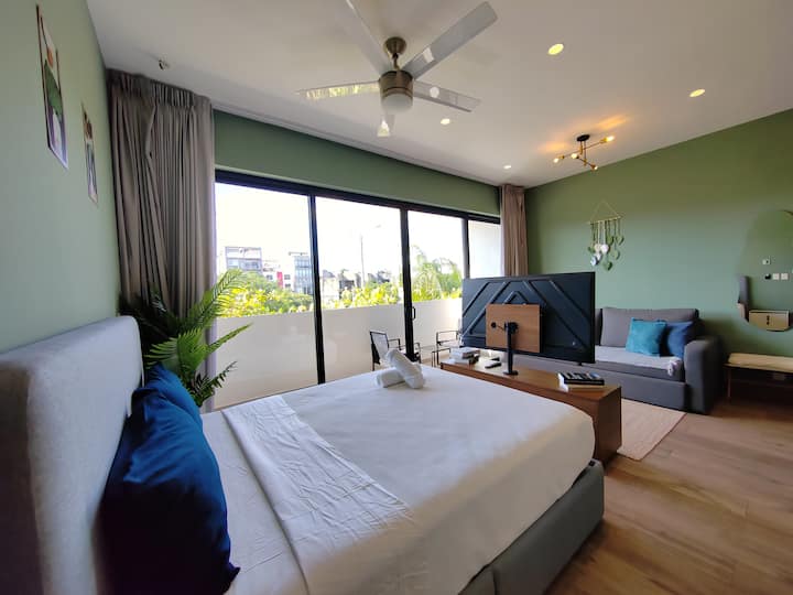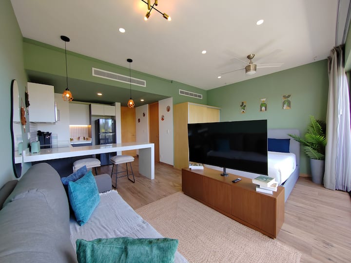 חדש! סטודיו מקסים ומרכזי/חדר כושר/בריכה/חלל עבודה משותף