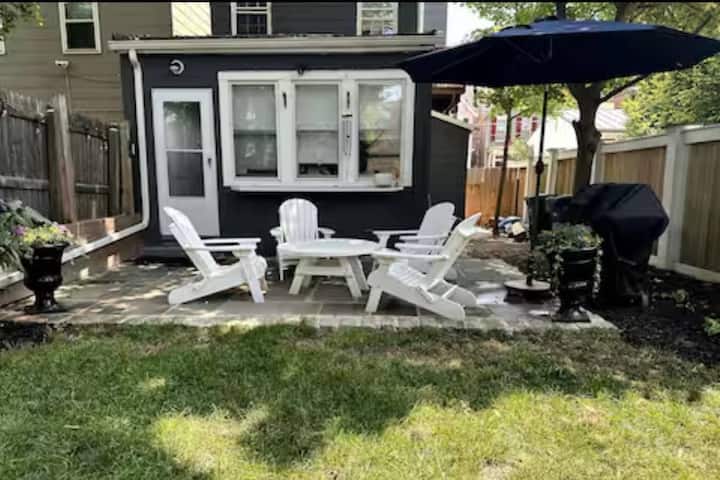 כמה צעדים מהרחוב הראשי בדירה ידידותית לכלבים עם חצר אחורית