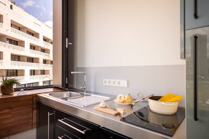 מלון הדירה שלנו כולל דירות ארבע עשרה שעוצבו בקפידה, המאורגנות ב -4 סוגים, הנעות בין אולפנים (חדרי קונספט פתוחים), אידיאליות לאורח אחד או שניים, לדירות עם עד 2 חדרי שינה נפרדים, עם עד 6 אורחים. אפשר לבחור בין סוגי הדירות "Einfach "," Zweifach "," Dreifach" ו -" Vielfach "שלנו, בהתאם להעדפתכם. יש לנו כמה דירות עם מאפיינים מיוחדים, כמו מקלחות עם חלונות גג, חדרי רחצה עם דלתות כפולות, מרפסות, קמינים, נוף לקו הרקיע של העיר מחלונות של 190 מעלות וכו '.