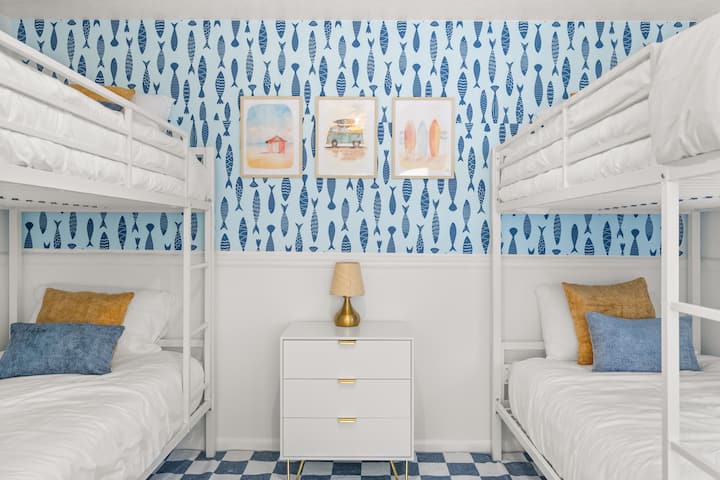 ✹ 3 חדרי שינה; מיטת קינג סייז אחת, מיטת קווין סייז אחת וחדר עם מיטות קומתיים הכולל 4 מיטות יחיד