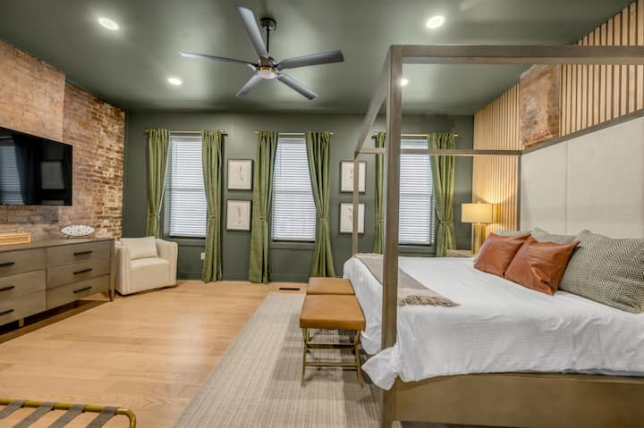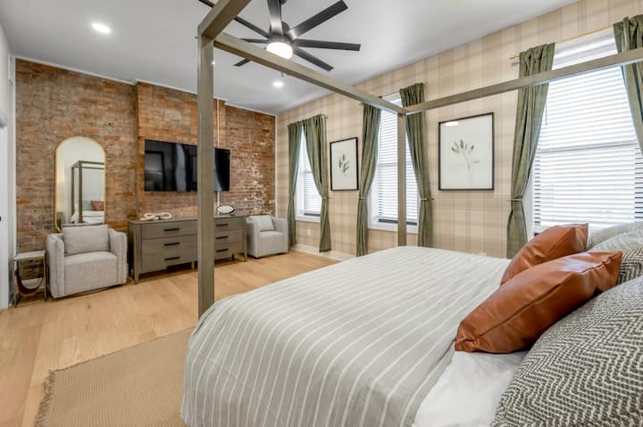 ברוכים הבאים ל-Somerset & Ember של Lunabase, בית עירוני משנת 1880, ששופץ עם קסם היסטורי ב-OTR שמתחדשת. בור אש על הגג, נוף לקו הרקיע ומקום לקבוצות ב-4 קומות. 4 חדרי שינה עם מיטת קינג + מיטת קווין אחת, 3.5 חדרי רחצה, Wi-Fi מהיר, מטבח שמאפשר שף, וילונות האפלה. הליכה לשוק פינדליי, ריינגייסט, בתי קפה וחנויות; נסיעה קצרה עם Uber למרכז העיר/קובינגטון. חניה ברחוב וצ'ק-אין קל עם קודן. אווירה עירונית; בטוחה ושקטה בפנים. הערה: 20 מדרגות בכל קומה. נדרש פיקדון אבטחה מראש.