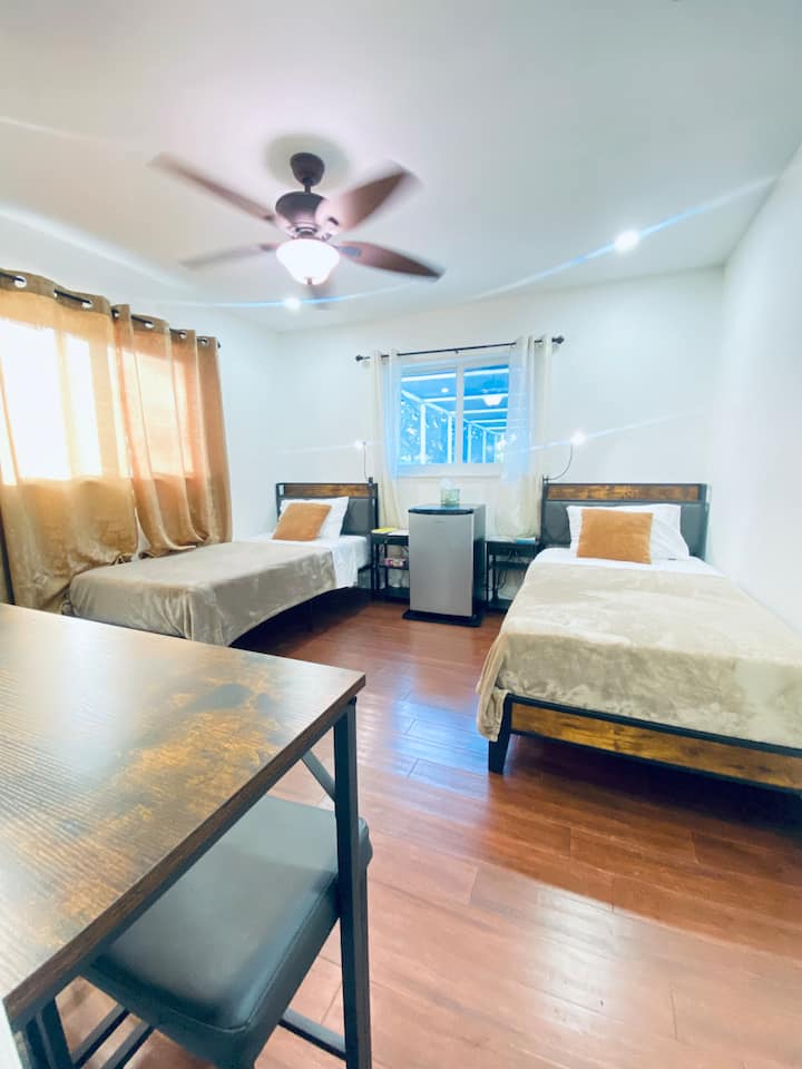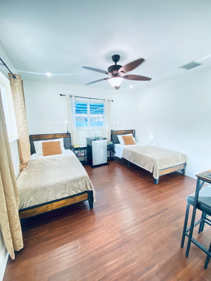 מיטה זוגית שקטה/חלל עבודה | נוף לבריכה | ליד פארק