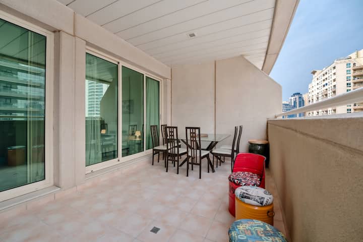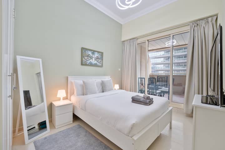 דירת חדר שינה אחד מרגיעה במרינת דובאי עם מרפסת ענקית