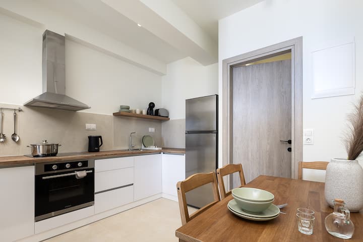 המטבח המאובזר עונה על כל צורך, ומציע את כל השירותים המודרניים להכנת ארוחות. תיהנו מהם ליד השולחן האלגנטי שמתאים ל-3 אנשים או בפינת האוכל החיצונית ליד הבריכה, עם נופים מרהיבים ורגיעה מוחלטת.