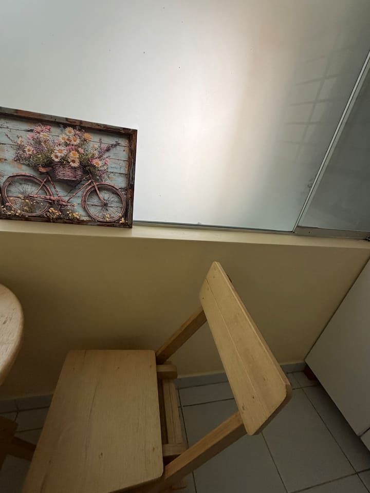 דירת סטודיו עצמאית עם מטבח ופינת אוכל.