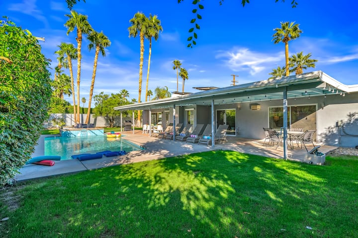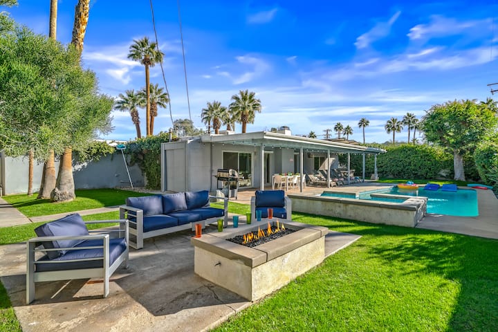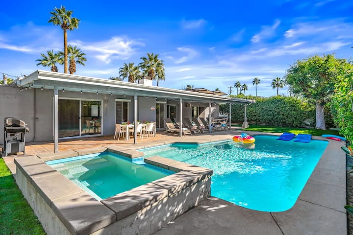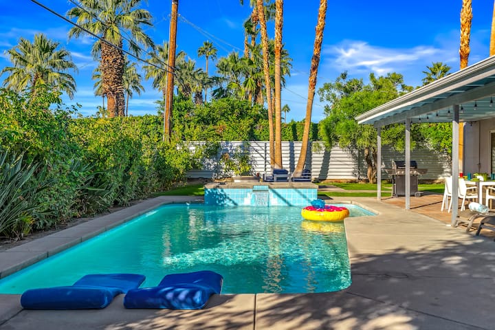 ברוכים הבאים ל-The Juanita Retreat, פנינה בפאלם ספרינגס המשלבת באופן מושלם קסם של אמצע המאה עם נוחות מודרנית. ממוקמת באחד הרחובות הנחשקים ביותר בעיר, מוקפת בבתים ארכיטקטוניים אייקוניים, המגורים המודרנית הזו משנת 1962 מזמינה אתכם להיכנס לעולם שבו עיצוב נצחי פוגש חיים מדבריים תוססים. מהרגע שמגיעים, השביל המעגלי יוצר אווירה של חלום של אמן, ומכניס אתכם לבית שמקרין גם תחכום וגם כיף.