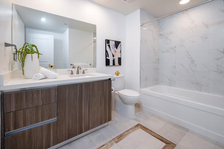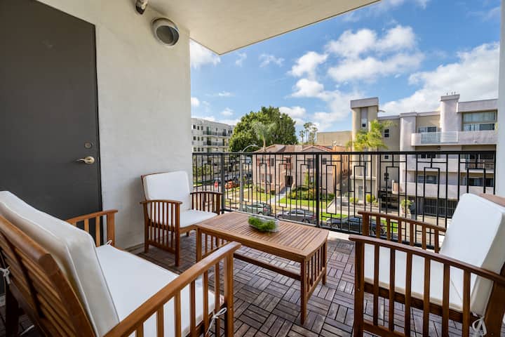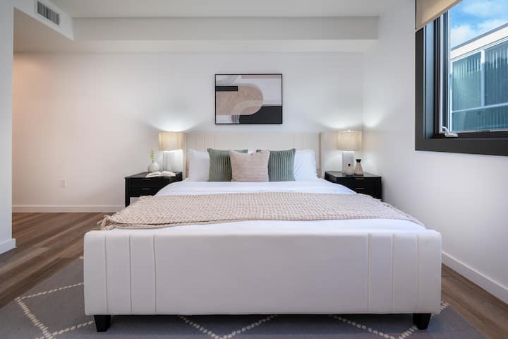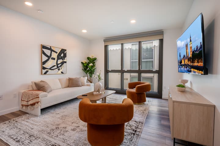 ברוכים הבאים ליעד המודרני שלכם בלוס אנג'לס, בית מגורים מדהים עם 3 חדרי שינה, 3 חדרי רחצה, מיטות קינג סייז וקווין סייז, חדרי רחצה צמודים פרטיים, מרפסת פרטית עם נוף לעיר, מכונת כביסה ומייבש כביסה, Wi-Fi מהיר, חניה מאובטחת מחוץ למבנה וגישה לחדר כושר מאובזר. ממוקמת בבניין מאובטח ומגודר באחת השכונות המבוקשות ביותר בלוס אנג'לס - אידיאלית למשפחות, אנשי מקצוע או קבוצות המחפשים שהייה עירונית פרימיום.
