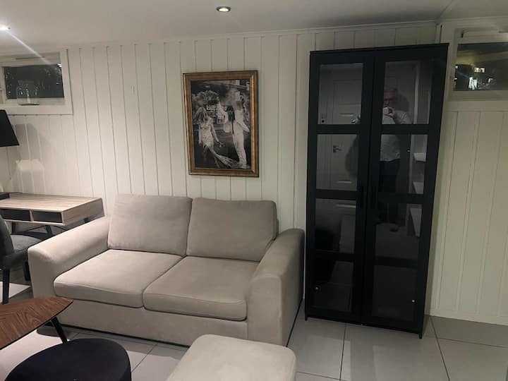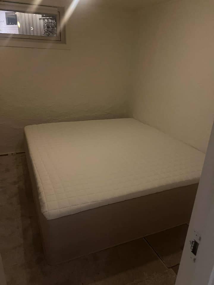 דירת מרתף, סלון, חדר שינה אחד, חדר רחצה. 3 מיטות.