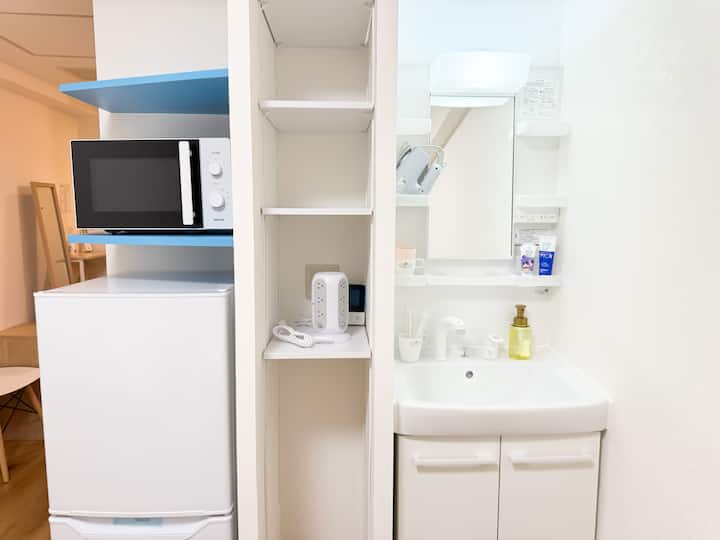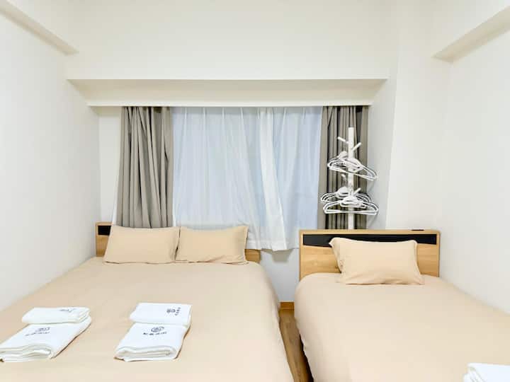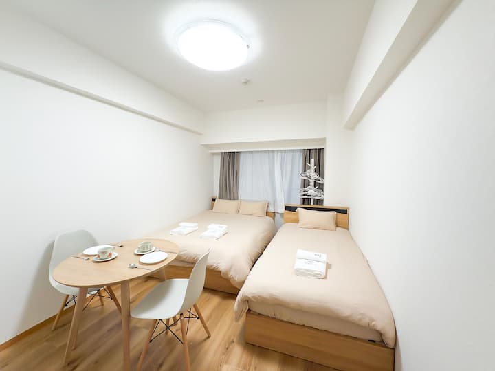 JR שינאוסקה 1 דקה| קישור ישיר לשדה התעופה| קישור ישיר לנמבה/אומדה/USJ| 2 מיטות ל-3 אנשים| הפרדה בין יבש לרטוב + מטבח