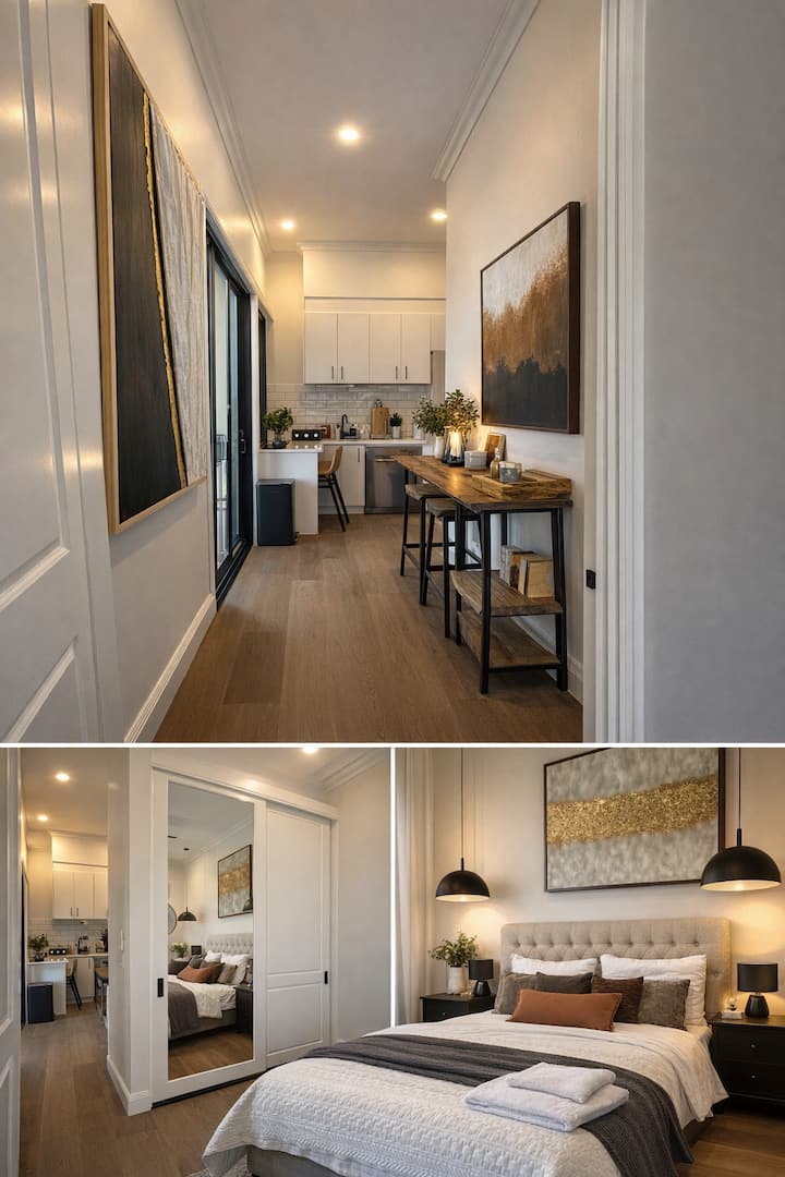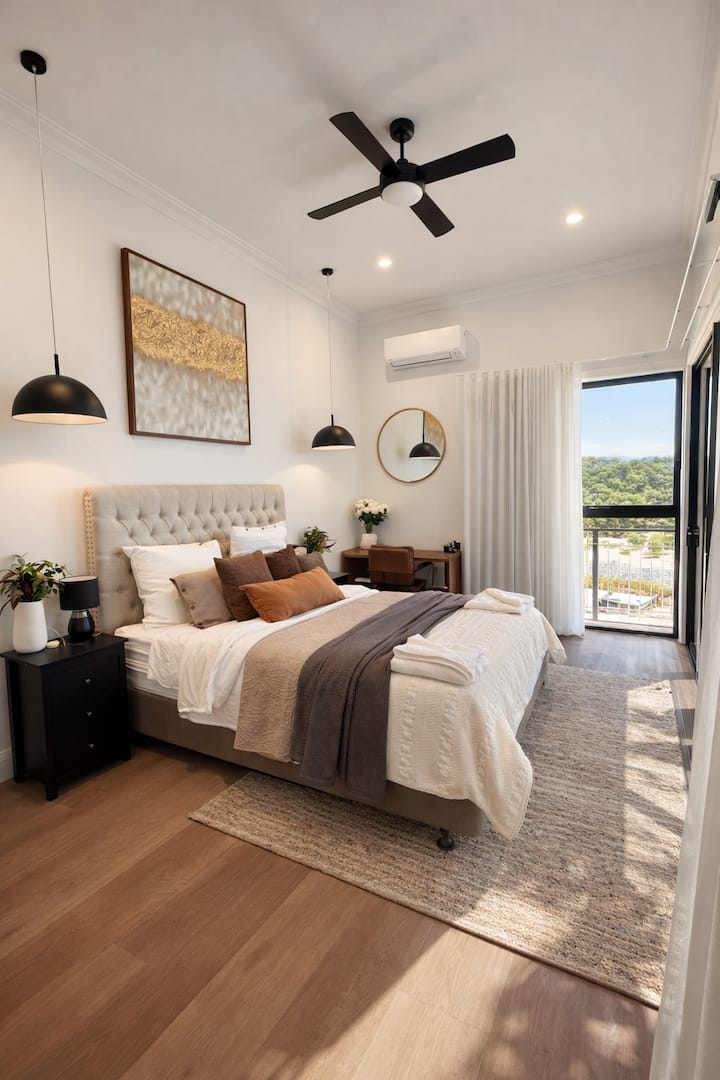 חדר השינה השקט מתהדר במיטת קווין סייז קטיפה, מיזוג אוויר וארון בגדים גדול לשהיות ארוכות יותר. תתעוררו לנופים יוצאי דופן של העיר והחוף, ואז תירגעו במרפסת הפרטית שלכם כשהשמיים משתנים בשקיעה - שם קנגורואים וחיות בר מקומיות נראים לעיתים קרובות באור הזהוב.
