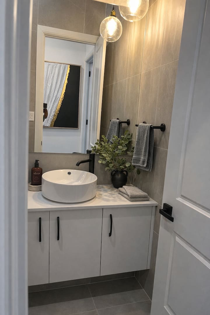 חדר הרחצה הוא חלל מדהים הכולל אריחי מעצבים, מקלחת מרווחת ושקע מודרני, עם מתקני רחצה יוקרתיים לנוחיותכם.