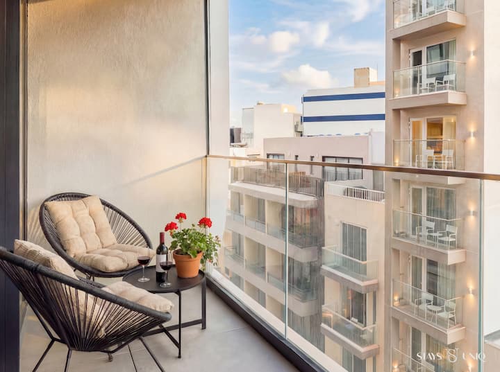 דירת שני חדרי שינה מודרנית עם גישה בלעדית לבריכת גג, הממוקמת בקומה החמישית של סוויטות מרקורי בסנט ג'וליאן.