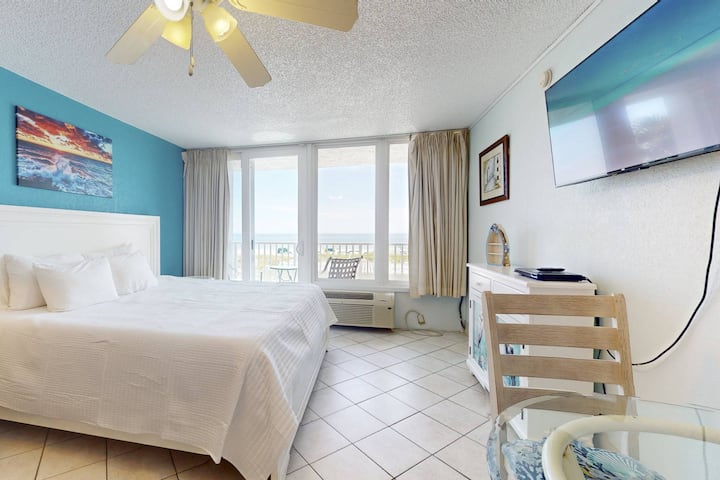 סטודיו על החוף עם מרפסת פרטית, בריכה ובר.