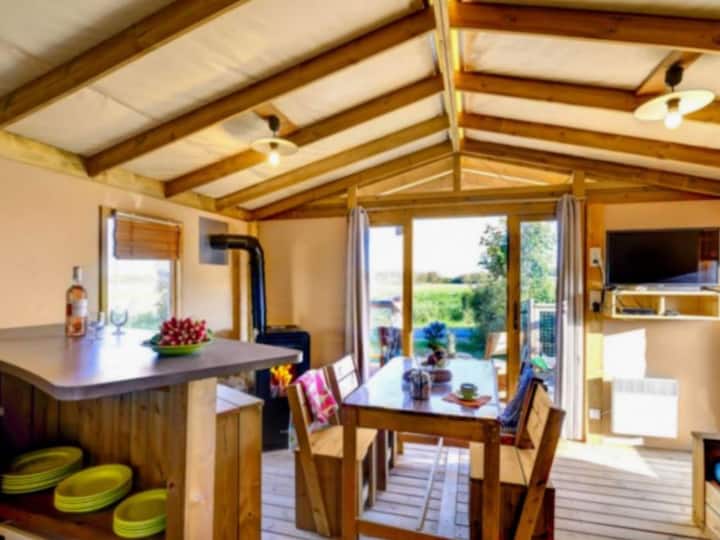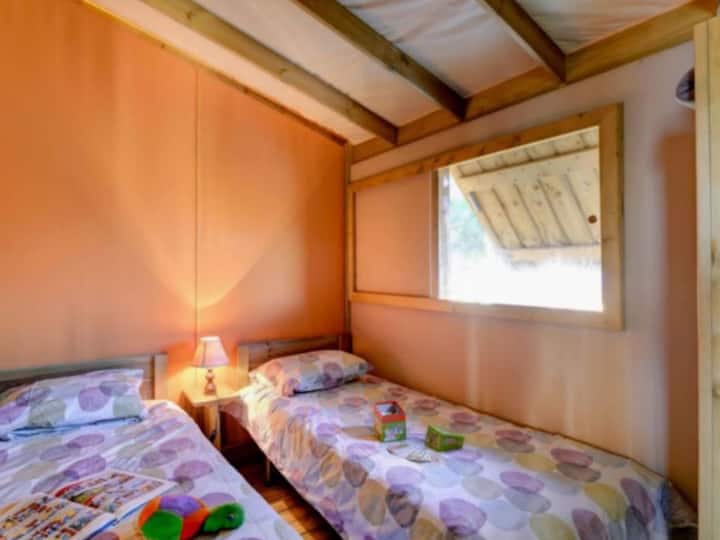 אוהל בד ועץ עם מרפסת ל-4 אנשים