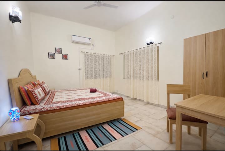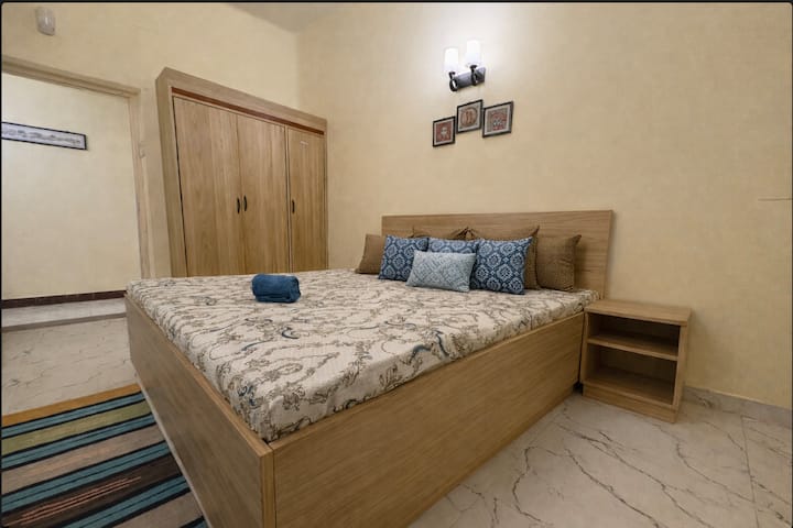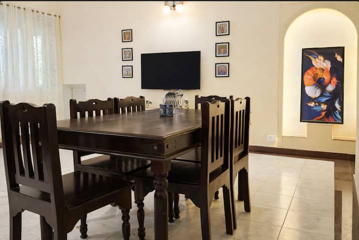 בית מרווח בקומת הקרקע עם 3 חדרי שינה בפארק ג'ודפור, דרום קולקטה. כולל סלון ופינת אוכל גדולים עם טלוויזיה חכמה, מטבח מאובזר ושלושה חדרי שינה מרוהטים היטב עם ארונות בגדים ושולחנות עבודה ו-Wi-Fi. שני חדרי רחצה מודרניים עם גייזרים, אחד עם אמבטיה. ליהנות ממרפסת פרטית גדולה עם פינת ישיבה בשכונת מגורים שקטה ויוקרתית, אידיאלית לשהיות קצרות או ארוכות נוחות. ממוקם במרכז ג'ודפור פארק עם גישה נוחה למרכזי העסקים של דרום קולקטה.