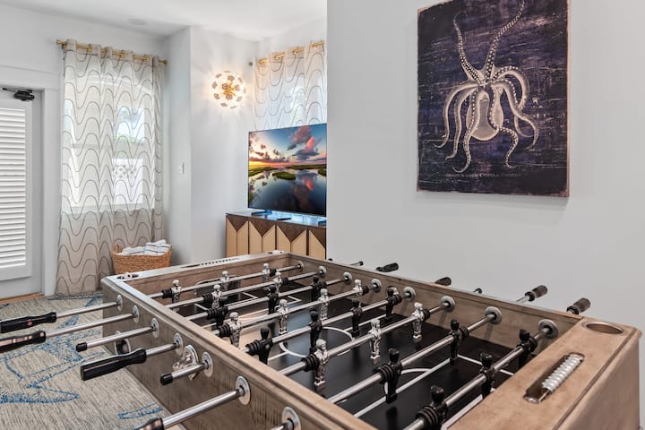 • בפנים, חלל המגורים בקומה הראשונה מקבל אתכם בברכה עם כניסה נוחה ללא מפתח. תוכלו להירגע עם טלוויזיה גדולה שבה תוכלו להתחבר לשירותי הסטרימינג המועדפים עליכם, ספה נפתחת בגודל קווין סייז, מטבחון עם מיני מקרר ושולחן פוטבול לתחרות ידידותית. ממש מחוץ לאזור המגורים נמצא חדר שינה 1, מקום המפלט האולטימטיבי לילדים, הכולל שתי מיטות קומתיים משולשות (שש מיטות בסך הכל!), חדר ארונות, מכונת כביסה ומייבש בגודל מלא וחדר רחצה צמוד עם מקלחת.