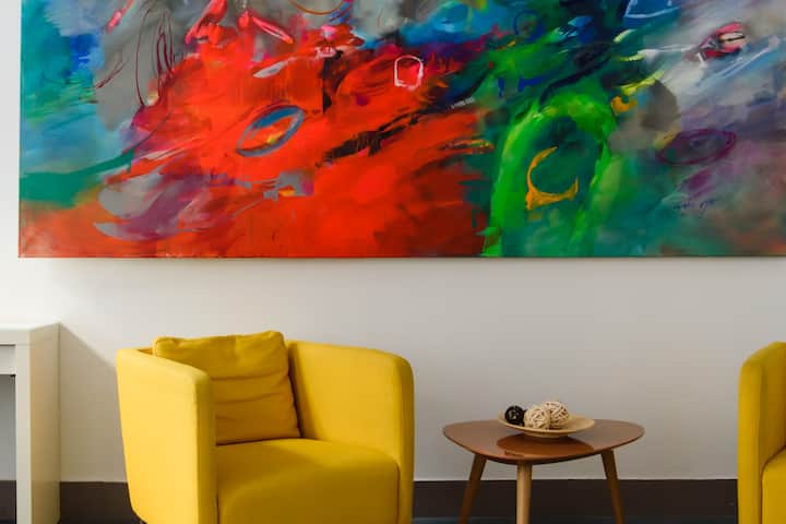 קודם כל, שובבות, חיוניות, יצירתיות וזריזות. כולם חלק מהחיים שלנו. אנחנו מקווים שנוכל לחלוק את המילוי הזה עם יותר ויותר אורחים שמבלים בדירת הסטודיו המשופצת החדשה שלנו.