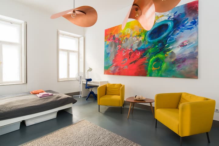 דירת נופש מעולה לאמנות בבודפשט + Wi-Fi
