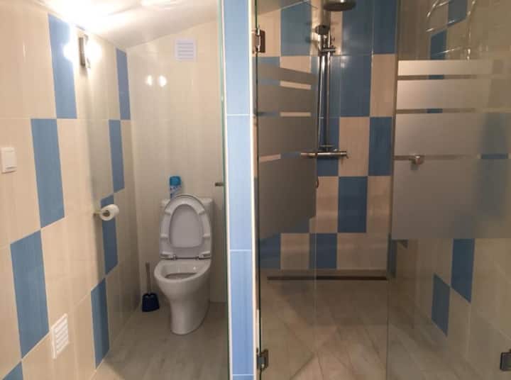 חדר שינה כחול, חדר רחצה פרטי, מרפסת פרטית