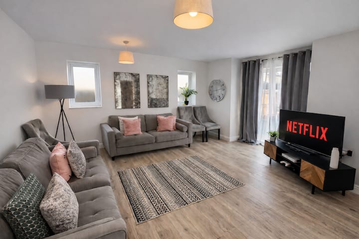 This modern 4-bedroom house is great for business & long-term stays in Sittingbourne , Kent.