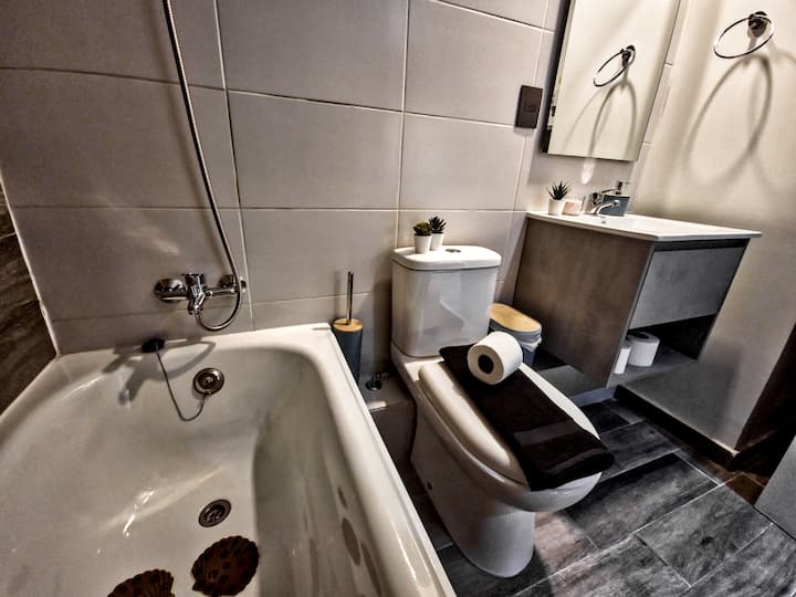 🚿 בחדר הרחצה, בדירה יש חדר רחצה מרווח המצויד באמבטיה, אידיאלי לרגע של רוגע. כדי שתוכלו ליהנות משהייה ללא דאגות, אנו מספקים מגבות, סבון נוזלי ונייר טואלט.