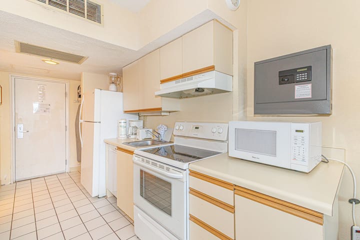 המטבח מצויד בכל מה שצריך כדי להכין ארוחות במהלך השהייה. לאורחים יהיו מכשירי חשמל בגודל מלא, כולל כיריים, תנור, מקרר, מקפיא, מיקרוגל, מדיח כלים, מכונת קפה וטוסטר. יש גם כלי בישול, סכו"ם, כלים ומגבות, כך שקל להכין כל דבר, החל מארוחת בוקר מהירה לפני שיוצאים לסיור ועד לארוחת ערב רגועה אחרי יום של בילוי ליד הים. למי שמעדיף לאכול בחוץ, רבות מהמסעדות האהובות במירטל ביץ’ נמצאות במרחק הליכה, ושירותי משלוחים נוחים כמו Uber Eats ו-DoorDash זמינים תמיד.