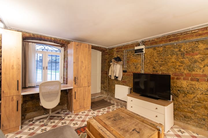 דירת חדר שינה 1 נעימה ומגניבה עם קיר לבנים בלב מודה