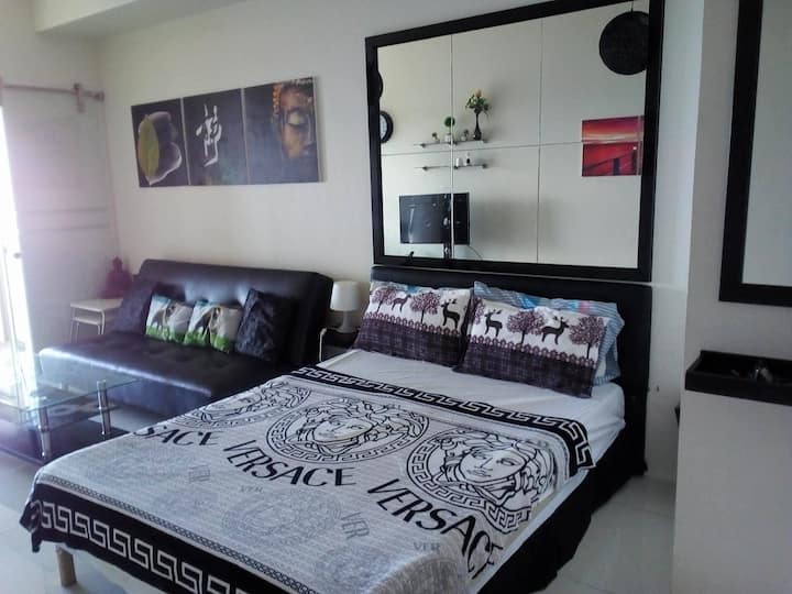 המקום ממוקם במגדל 2 של SMDC Wind Residences, קומה 22, אגינלדו הייוויי,Maharlika West,Tagaytay City,Cavite. זו יחידת חדר שינה אחד עם מיטת קווין סייז וספה נפתחת נפתחת.