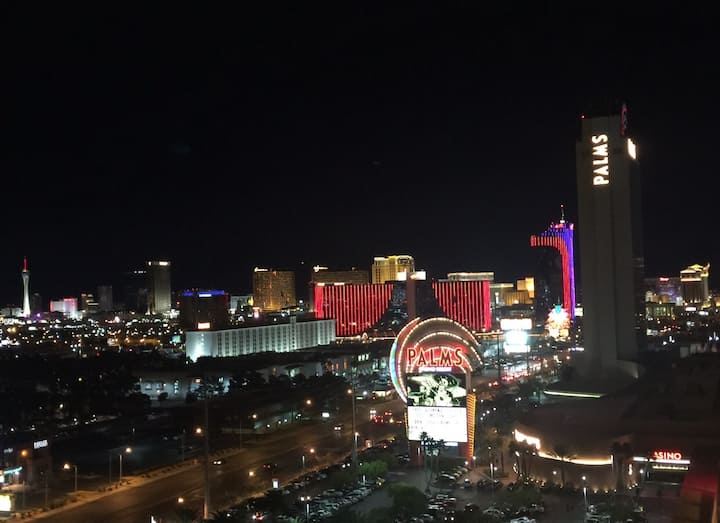 אני אוהב לטייל בדיוק כמוך. אז ידעתי מה אנחנו באמת צריכים בדרך. חדר, חמים ,נוח,נוח, והנוף מהחלון הגדול היה יפהפה! הנה אנחנו. כשתסתכלו על שדרות לאס וגאס מהחדר, תוכלו לומר שאני בבית.