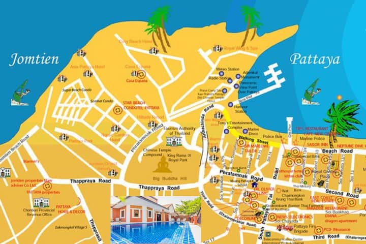 הווילות שלנו ממוקמות במקום מגורים 4 * בלב פטאיה, ליד החופים, מרכז העיר ורחוב ההליכה.