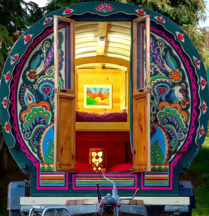 כל הקרוואנים הצועניים שלי בנויים ביד על ידי בעלי ואני עושה את כל יצירות האמנות עליהם. במקור אני מאייר במקצועי ועכשיו אני מצייר קרוואנים צועניים מסורתיים רתומים לסוסים עם בסיס לקוחות של אספנים נלהבים.