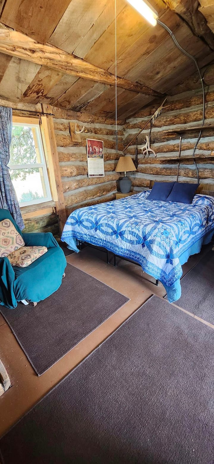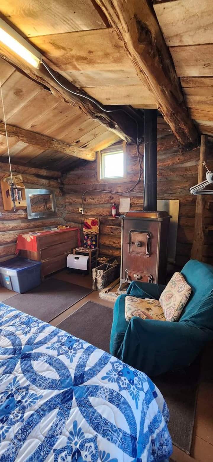 בקתה עם 2 מיטות קומתיים: עם עשר מיטות, כל אחת עם מזרן, בשני חדרים. יש תנור עץ לחימום ותאורה אחת בתקרה. יש סדינים, כריות וכמה שמיכות. הביאו שקיות שינה. https://www.airbnb.co.in/rooms/17879435?preview_for_ml. יכולה להלין עד עשרה אנשים.