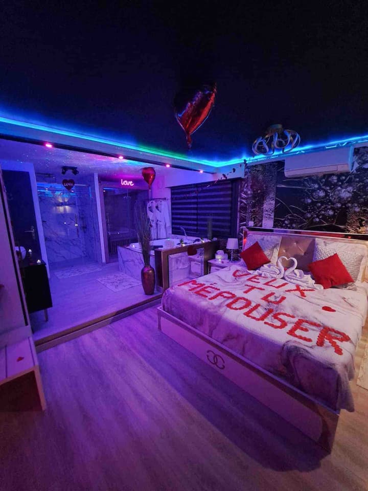 חדר האהבה: אמבטיה מרפסת וכרומותרפיה, סאונה פינית מסורתית, מיטת קינג סייז, שמיים זרועי כוכבים עם אורות צפוניים, משחקי אורות, טלוויזיה עם מטבח מאובזר וכו '... שום דבר לא נשאר במקרה כדי שיהיה לכם רגע בלתי נשכח!