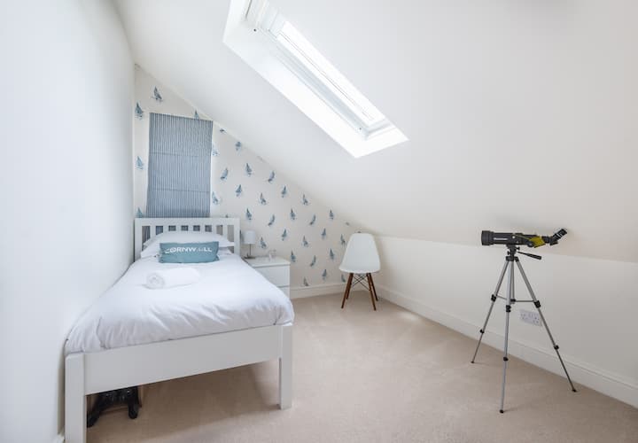 למעלה תמצאו את חדר השינה הראשי עם מיטת קינג סייז, נוף לים ולאזור הכפרי וטלוויזיה; חדר השינה הכפול השני עם נוף לאזור הכפרי; חדר זוגי וחדר יחיד. בחדר הרחצה המשפחתי יש אמבטיה מפוארת ומקלחת נפרדת. לכיור יש נופים – ניחשתם נכון – אל הים.
