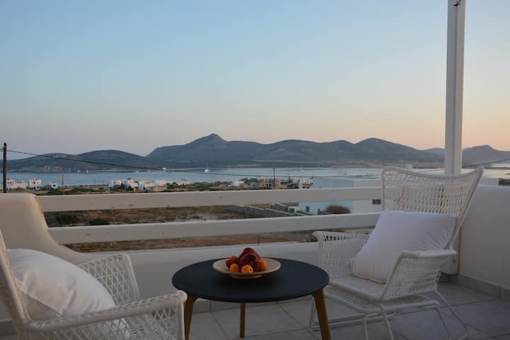 בית גדול עם נוף מרהיב לים הדרומי של אנטיפארוס ולאי דספוטיקו העתיק.