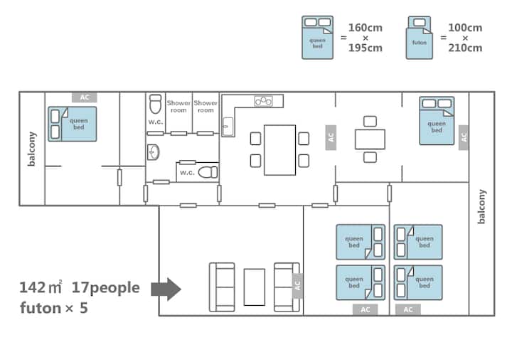 אנחנו מציעים דירה מרווחת במיקום מושלם להשכרה באופן פרטי ל -17 אורחים לכל היותר והיא נמצאת במרחק של 3 דקות ברגל בלבד מתחנת נמבה ביציאה 25 ברכבת התחתית של מידוסוג'י. הדירה היא כ -142 מ"ר ומצוידת במכשירים מודרניים, נוחות ושני שירותים נפרדים, 2 חדרי מקלחת ו -2 מכונות כביסה, מה שהופך אותה למושלמת לקבוצות גדולות שרוצות לעשות סיור וקניות במרכז אוסקה. רשת Wi - Fi עם כיס בחינם מסופקת.