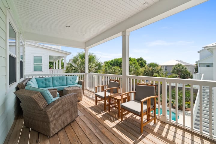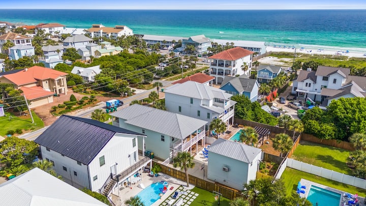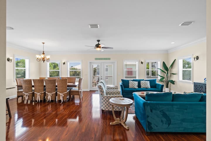 🐬 Dolphin Retreat הוא בית בקריסטל ביץ' עם 4 חדרי שינה ו-4.5 חדרי רחצה + קוטג' שיכול להכיל 12 אנשים. במרחק צעדים ספורים מהמפרץ, יש בריכה פרטית, מטבח חיצוני עם גריל, טלוויזיה ואח, ועגלת גולף ל-4 נוסעים בחינם. שתי סוויטות קינג, חדר קומותיים וסוויטת קווין סייז כפולה מציעות נוחות למשפחות. ידידותי לחיות מחמד, Wi-Fi, מטבח מצויד במלואו, וקרוב ל-Destin Commons, Camille's & The Crab Trap - חופשת החוף המושלמת שלכם!