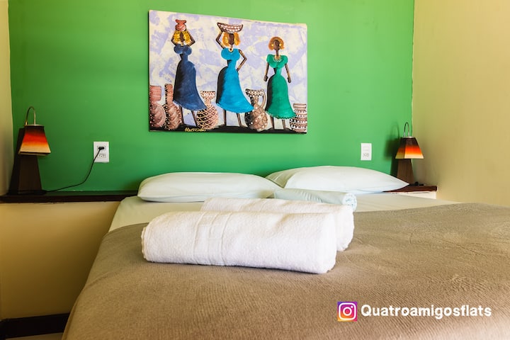 Quatro Amigos Flats ממוקמת בשכונה פונטה נגרה בנטאל ואוספת כמה תאריכים פנויים. זהו מקום שקט, שקט ובטוח; הוא פונה לים ולחוף הטוב ביותר בעיר נטאל; ליד הגבעה הקירחת, גלויה של העיר ו -20 מטר מהמסעדות הטובות והאופנתיות ביותר בחוף פונטה נגרה. אנחנו מברכים את האורחים שלנו באופן אישי, נותנים חשיבות רבה לצרכים ולציפיות שלהם, ואנחנו שואפים לשמור על סביבה דיסקרטית ומוכרת.