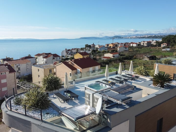 מתחם דירות אקסקלוסיבי וילה ייחודי 9 ממוקם 70 מטר מחוף הים במקום פודסטראנה ליד ספליט (10 ק"מ). לחוף יש כניסה עדינה לים ויש פארק פארק מים לילדים בקרבת מקום. דירת היוקרה הסופר יוקרתית בגודל 65מ"ר. הנכס מציע מרפסת מרווחת עם בריכת שחייה המצוידת בכיסאות שיזוף נוחים, פינת ישיבה, מנגל עם גריל להכנת אוכל, מקלחת חיצונית ושירותים.