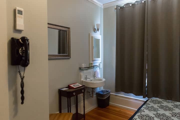 אם אתם מחפשים מלון מסחרי, סביר להניח שלא נתאים לכם. אנחנו בבעלות משפחתית ומופעלים בדגש על שירות לקוחות ומספקים את החוויה הייחודית של לחזור אחורה בזמן וליהנות מהארכיטקטורה והשיקום המדהימים של האוצר ההיסטורי הנפלא הזה. כמות עצומה של מחשבה, משאבים וטיפול הושקעו בניסיון למצוא את האיזון המושלם בין שמירה על קסם הווינטג' וההיסטוריה של הבניין לבין הוספת שירותים מודרניים חיוניים. המלון שלנו ממוקם במרכז העיר מול פארק ג'ורג' וושינגטון היפהפה, והוא נמצא במרחק הליכה קל ממסעדות, תיאטראות וחנויות רבות. אנחנו גם במרחק כמה רחובות מתחנת הרכבת ההיסטורית שעדיין פועלת כיום. אמנם יש לנו סוויטות במלון עם אמבטיות רגליים מקוריות או מקלחות שיש, אבל חדרי הווינטג' שאנחנו מציעים ב - Airbnb חולקים שירותים בהמשך המסדרון ומקלחת שיש הניתנת לנעילה. לא הוכנסו טלוויזיות לחדרים, אבל, כהנהון למודרניות, יש גישה חופשית לאינטרנט אלחוטי בכל רחבי הנכס. רצפות העץ המקוריות של 1920 וכיורי החדר עדיין שלמים עם תוספת מבורכת של יחידות החימום והקירור האישיות המתקדמות ביותר. תוכלו למצוא מגבות כשאתם נכנסים לחדר האורחים, כמו גם שמפו, סבון ואטמי אוזניים בחינם כדי להפחית את הרעש של פעילות במרכז העיר, כגון רכבות, רעש ותנועה בזמן שאתם ישנים. לידיעתכם, כמלון בוטיק, אנחנו מאיישים את דלפק הקבלה שלנו סביב אלה שמגיעים ומבקשים מכם ליצור איתנו קשר כדי לקבוע שעת צ'ק - אין כדי שנוכל לוודא שאנחנו שם ומוכנים לעשות לכם צ'ק - אין.