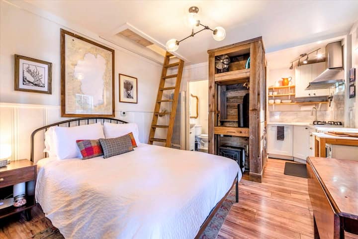בסמוך למטבח, יש מיטת קווין סייז נוחה עם מזרן ג'ל, מצעי כותנה, שמיכת פוך וארבע כריות. היא כוללת גם שולחן אוכל קטן לשניים המשמש גם כחלל עבודה.