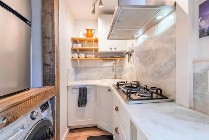 המטבח קטן אבל יש בו משטח אבן ומצויד ברוב הפריטים שתצטרכו:
