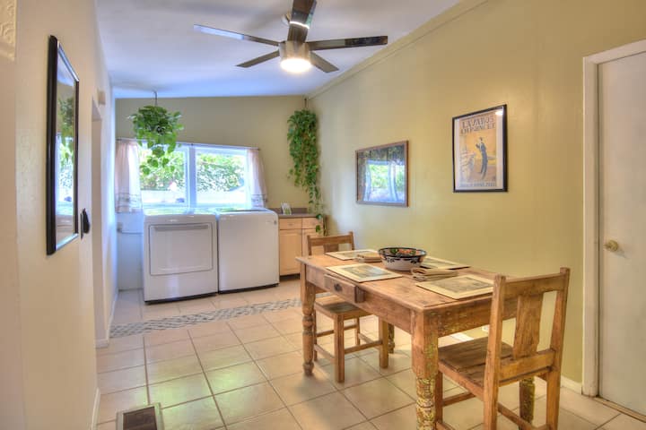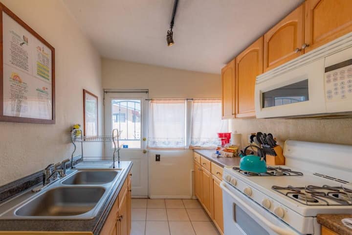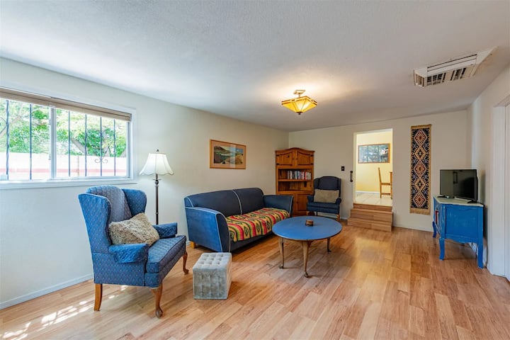 כולם רצויים כאן. נשים שמטיילות לבד יכולות להרגיש בנוח לשכור מאישה אחרת (וגם לדעת שלחלונות ולדלתות יש סורגי בטיחות). זוגות ימצאו את המקום מאוד פרטי ושקט, אבל עדיין במרחק הליכה למסעדות נהדרות. אני פעיל בסצנת הקולנוע של ניו מקסיקו ואוהב לארח אנשים מהתעשייה שמבקרים. הנכס מתאים להשכרה לטווח ארוך מכיוון שיש בו מקרר גדול, מכונת כביסה ומייבש כביסה, חניה מחוץ לרחוב ושטחי אחסון רבים.