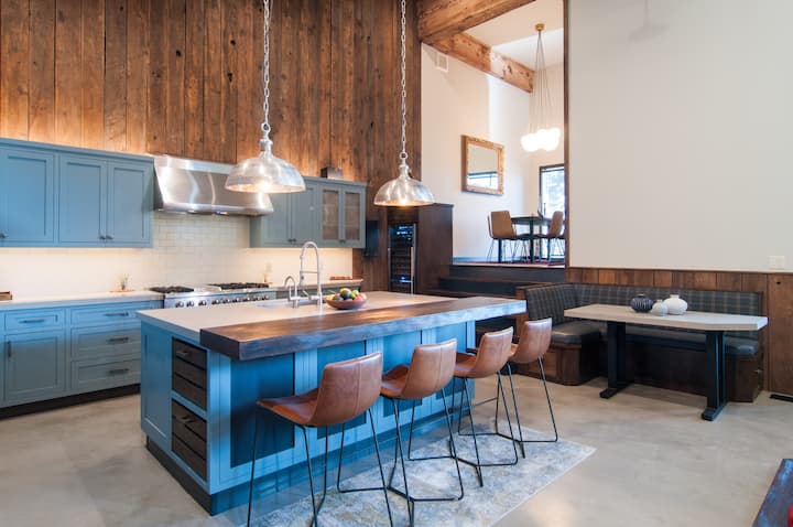 • מטבח/אוכל - המטבח החדש מספק את כל השירותים המודרניים לאורח שהייתם מצפים לקבל מבית יוקרה. מכיוון שהמטבח הוא מקום טבעי להתקהלות, יש פינת ארוחת בוקר ושולחן, כמו גם מקומות ישיבה על הדלפק באי. כמו כן, רק גרם מדרגות קצר מהמטבח הוא הבר הרטוב וחדר האוכל עם שולחן מותאם אישית שנבנה מחתיכה בודדת של אגוז שחור אמריקאי בעובי 3.5אינץ '.