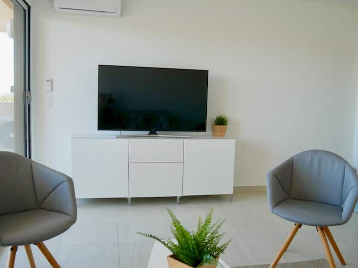 דירת F2 משופצת ממוזגת במרכז העיר, נוף פתוח