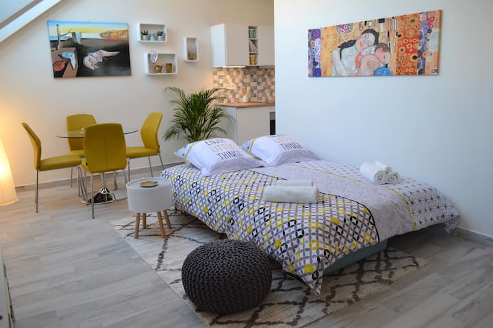 לופט מודרני עם מיזוג אוויר ו-Disney+